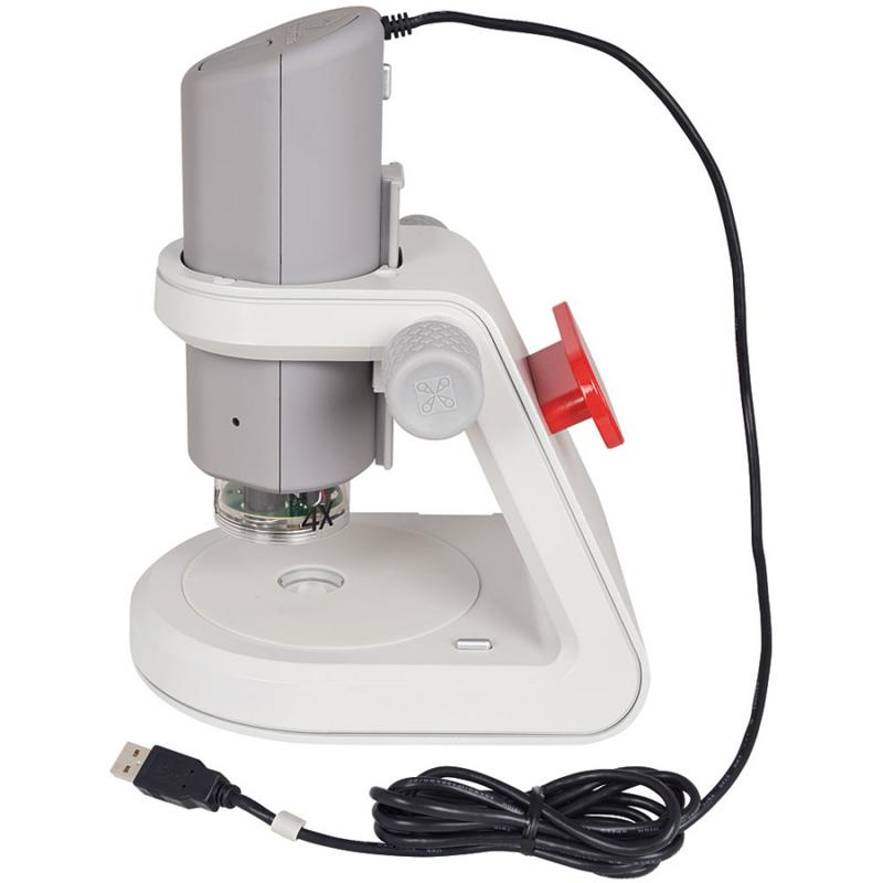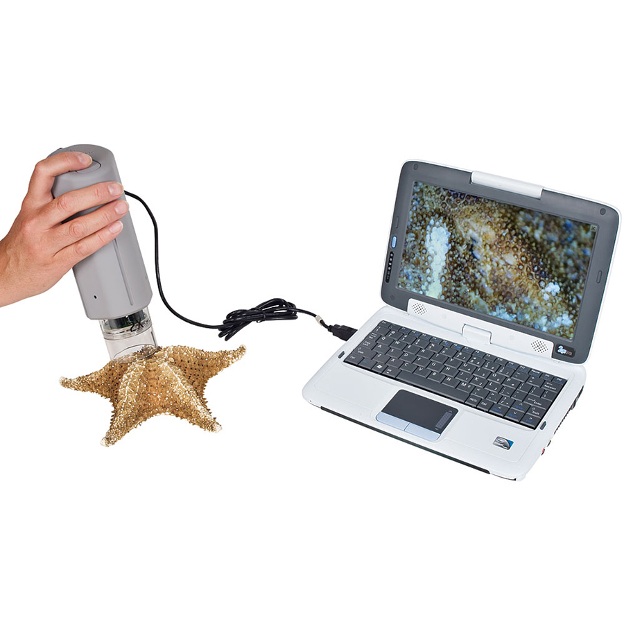Цифровой USB-микроскоп Kena Т-1050 – это оптимальный вариант для использования в образовательном процессе в начальной школе, может использоваться в дошкольных образовательных организациях. Максимальное увеличение микроскопа – 100 крат позволяет рассматривать и изучать практически любые предметы, которые окружают. С помощью этого микроскопа можно получить цифровые изображения макро- и микрообъектов. Микроскоп подключается к компьютеру через интерфейс USB, имеет всего 2 кнопки: кнопки включения нижней подсветки объектов, рассматриваемых «на просвет» и кнопки фото- и видеосъемки объекта. 3-х позиционный объектив позволяет выбрать увеличение: 20х; 40х или 100х. Съемная головка видеокамеры микроскопа позволяет рассматривать объекты в 3D формате.